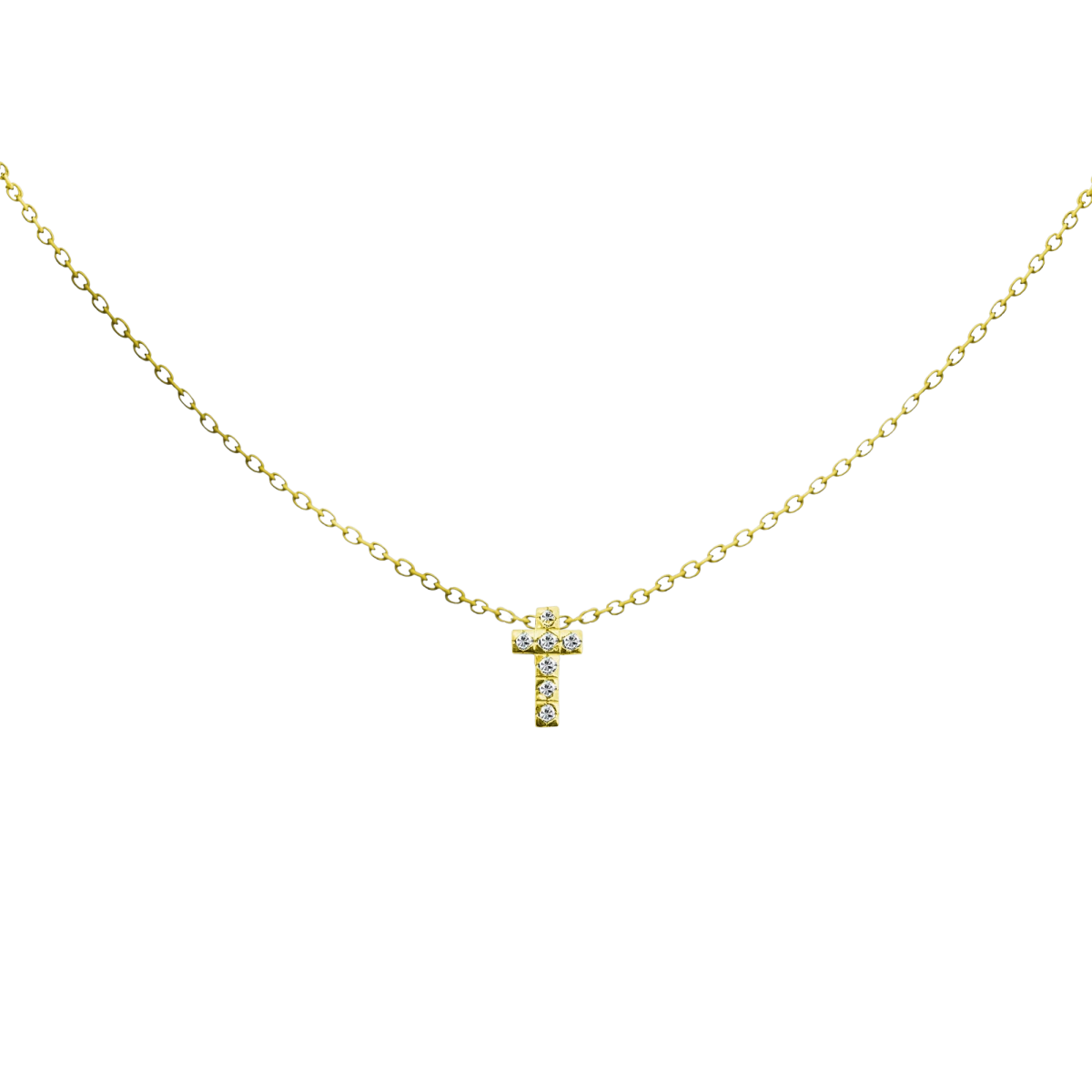 • Fazon: Cirkónia Féldrágakő Kereszt Sárga Arany 14K Nyaklánc