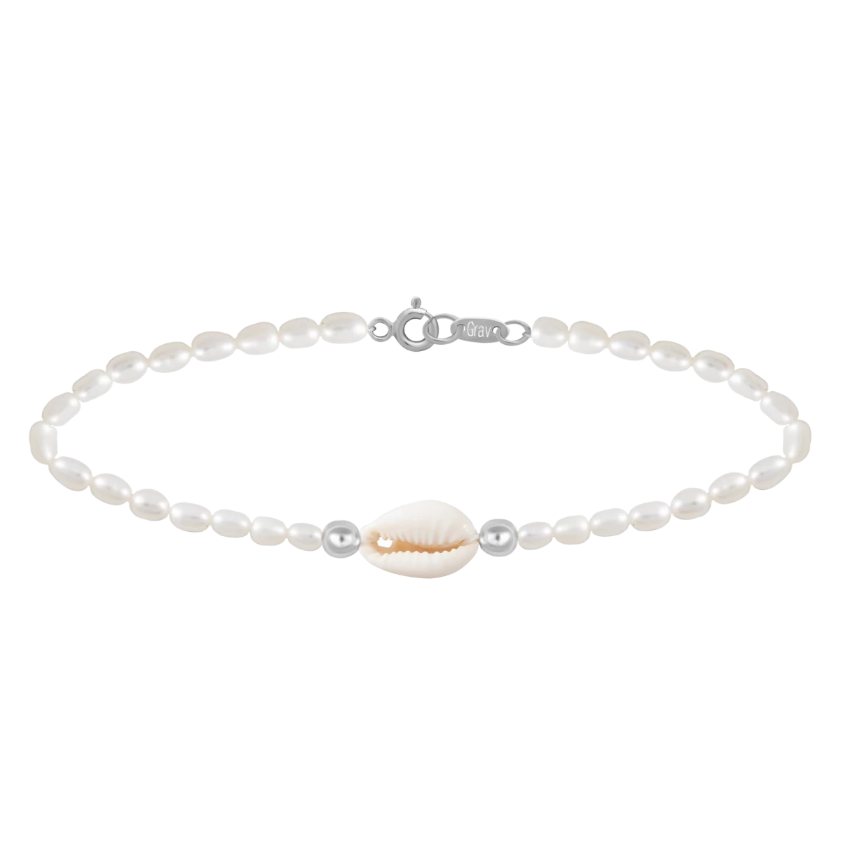 Kagyló és Fehér Édesvízi Gyöngy Ezüst 925 Golyó Karkötő