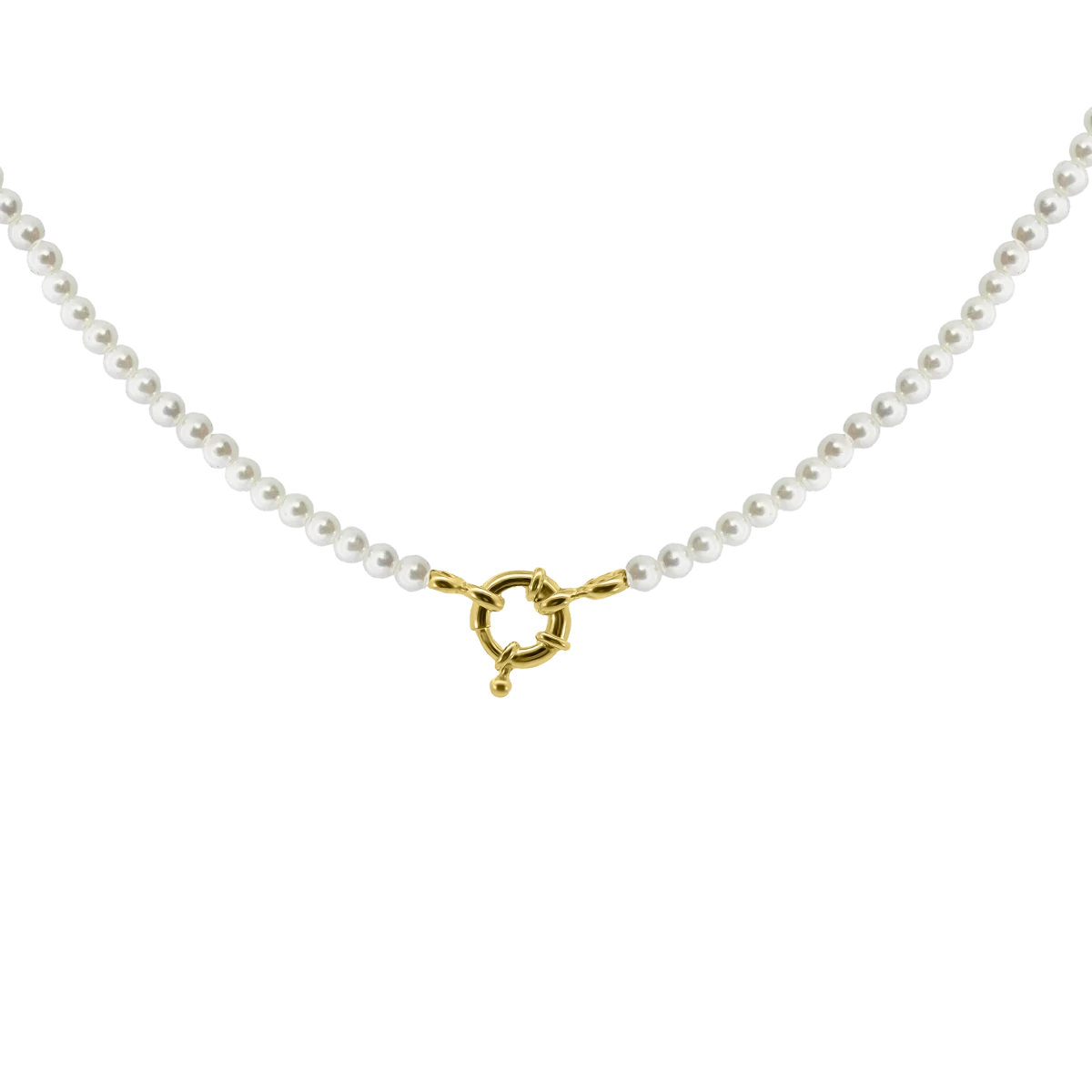 Egy nyaklánc, amely ötvözi a természetes szépséget és a modern dizájnt: a kis méretű gyöngyök és a feltűnő, látványos, 18 karátos sárga arannyal bevont ezüst zár együtt tökéletes választás azok számára, akik szeretnének kitűnni a tömegből.