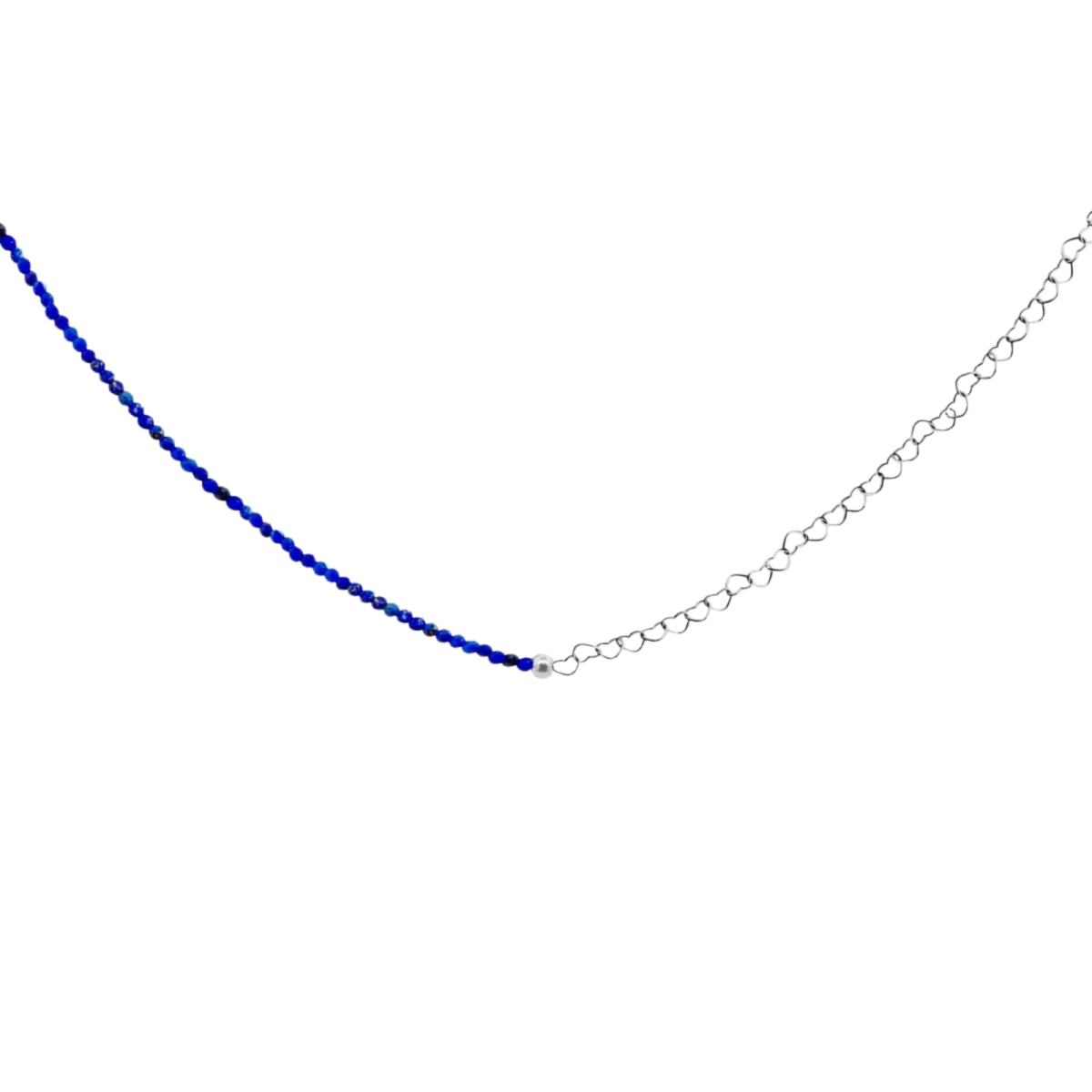 Ásvány és nemesfém találkozása egy ékszerben. Az egyedi szív alakú láncszemek a legújabb trendnek megfelelő kialakításúak. A láncszemek mérete: 4 x 3,5 mm. A lápisz lazuli jelentése: kék kő. Régen az uralkodók kövének tartották. Stresszoldó, csökkenti a depressziót, immunizál. Jótékony hatásssal van a pajzsmirigyre és a torokra. Viselőjének önbizalmat ad, fejleszti a kommunikációt. Erős spirituális kő, meditáció közben hasznos társ.