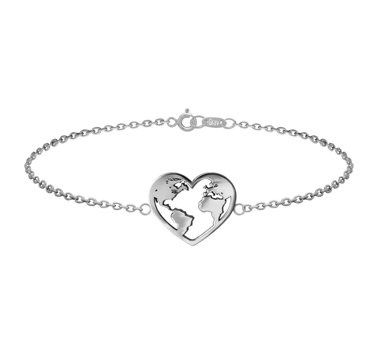 • Fazon: Szívben Földgömb Ezüst 925 Karkötő