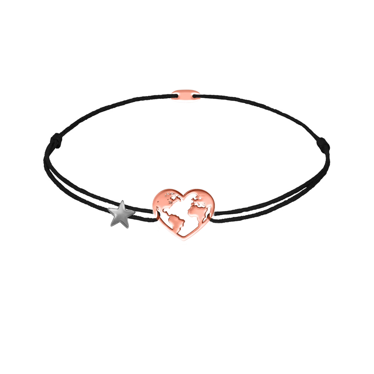 • Fazon: Szívben Földgömb Hematit Csillaggal Vörös Arany 14K Fonalas Karkötő